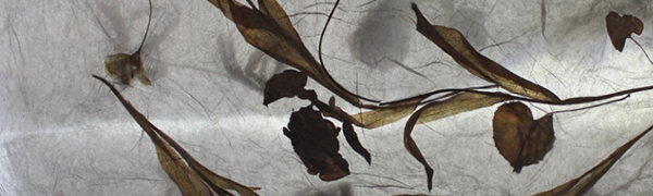 Papier fasziniert mich durch seine Zerbrechlichkeit und Transparenz. Getrocknete Blüten und Blätter haben dieselben Eigenschaften. Durch die Verwendung dieser Materialien in meinen Kreationen findet eine bizarre Verfremdung statt.